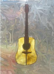 | This guitar is the same as the ones pictured above, except that it has a sunrise made from red, orange and yellow glass for an extra flash of color. $63.00 including shipping |