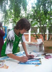 | The girl pictured above designed this piece and it was voted best to represent the school by the kids in the class. |
