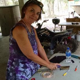 | A class in Florida. Making butterflies. This was a fun gathering along the banks of the Suwannee River. We made butterflies and roses and moons and dragonflies. |